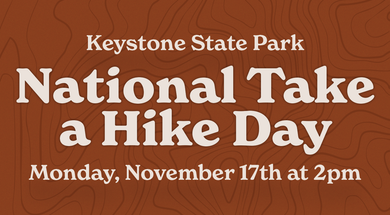 Explore Keystone State Park's Ranger Trail and talk about general hiking tips and etiquette. This easy, 1.25-mile trail is suitable for beginner hikers of all ages, and the guided hike will take about an hour to complete. Parking is available across the street at the front office, although space is limited and carpooling is encouraged. Dogs are welcome on the trail so long as they are kept on a leash.