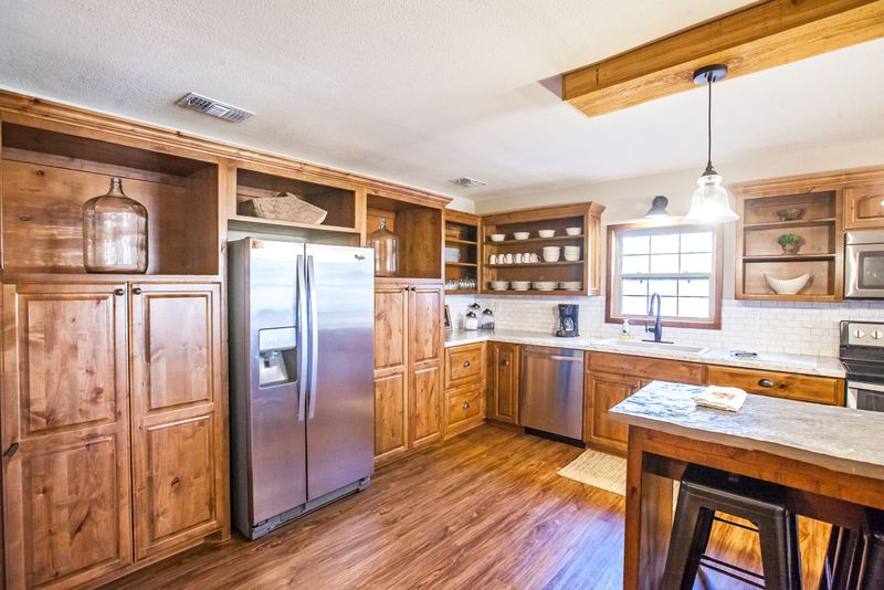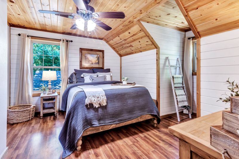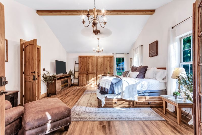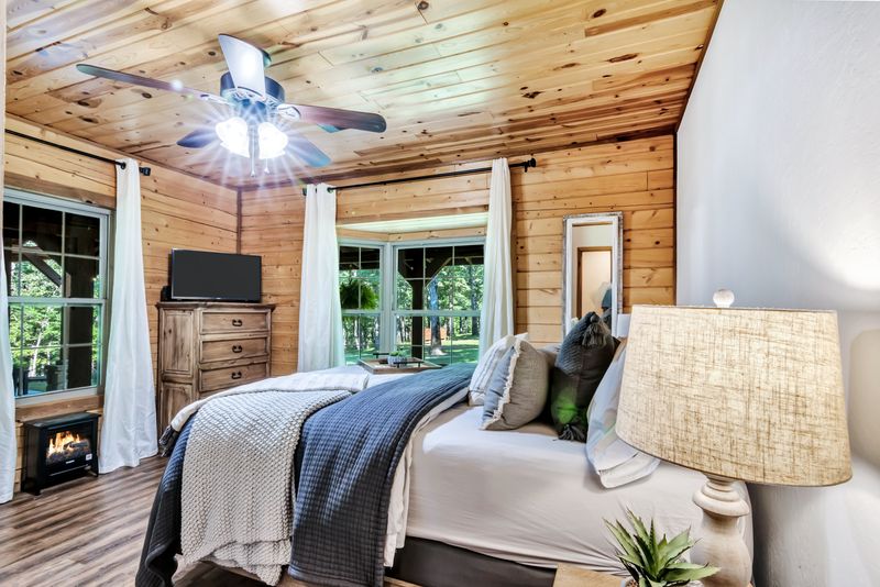 Inside the Farmhouse Cabin, all ages are invited to relax and unwind. This vacation destination is ideal for family gatherings and fun getaways with friends, with space for up to 10 guests to sleep. Located on 10 private acres, complete with a spring-fed pond and walking trails, the Farmhouse Cabin allows guests to get up close with nature. At this Smithville cabin, melt off stress in the hot tub or enjoy a dose of tranquility on the swing set. During your stay, be sure to spread out among the full kitchen, multiple living areas and three bathrooms for a dash of peaceful zen or solitude.
